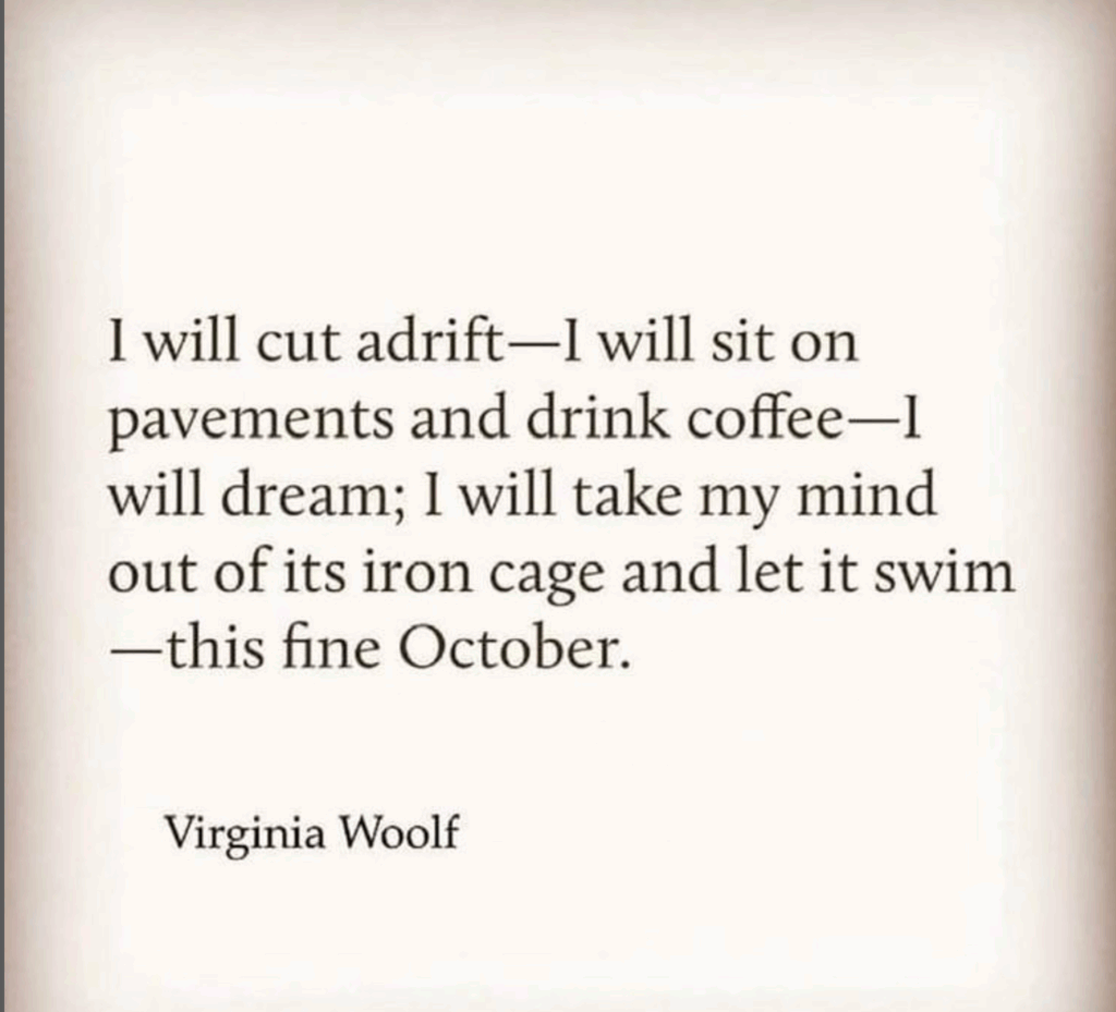 +V. WOOLF ON OCTOBERS: Let the mind swim, Magpies!
