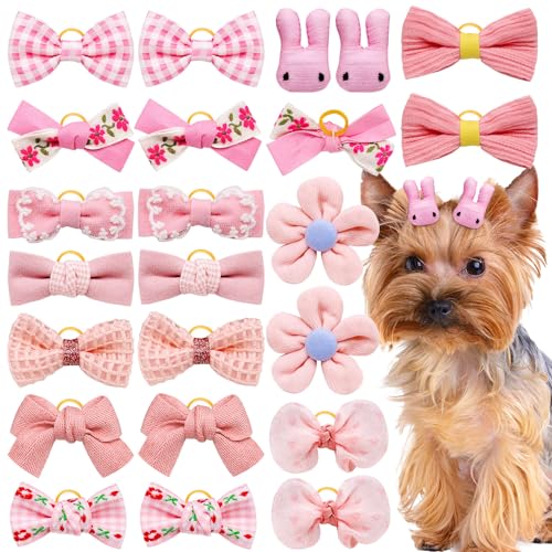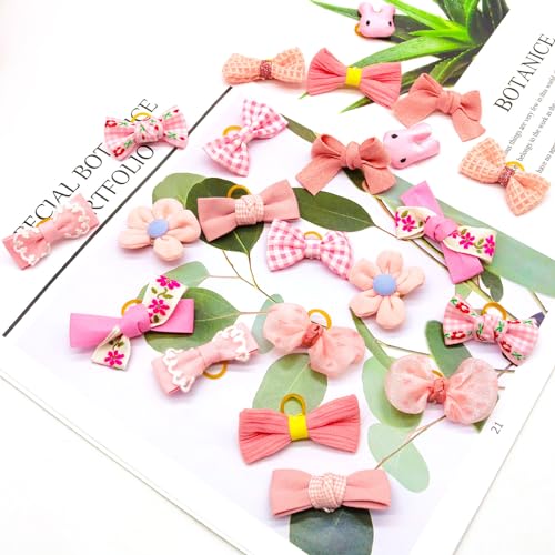 Mruq pet 20pc Light Pink Small Dog Hair Bows with Rubber Bands, Bulk Puppy Dog Hair Bows, Mix Handmade Cute Dog Gooming Flower Ball Bowknot Top Knot for Holiday Daily Yorkie Dog Hair Accessories