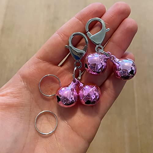IVIA PET 4 Sets Cat Bell for Dog Collar Charm Training Pet Pendant Accessories with 2 Pack Stainless Steel Dog Tag Clips(2 X-Small Pink)