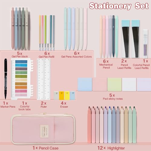 HRFGWDD 52 PCS Aesthetic School Supplies with Highlighters, Mechanical Pencils, Color Ink Gel pens, Pencil Case, Bible Study Supplies, Pens Pencils and Highlighters Set, Stationary Set for Student