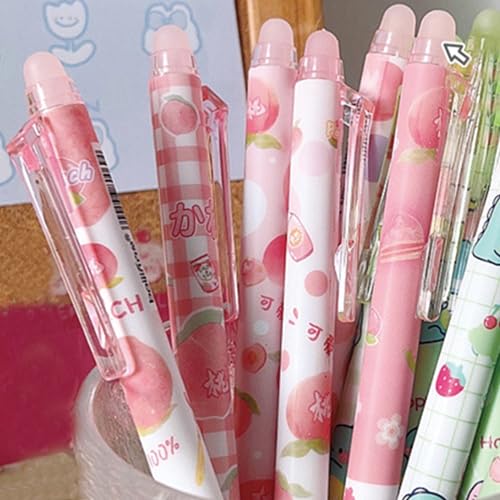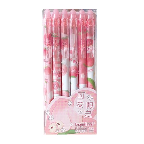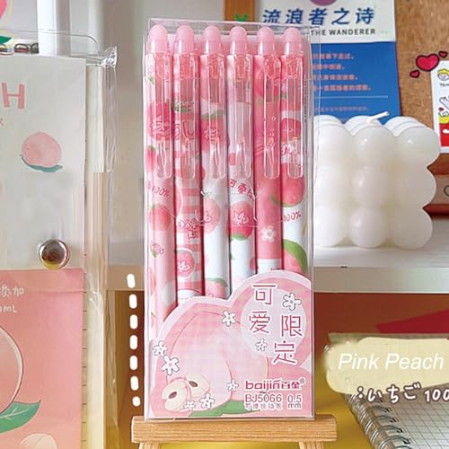 Cute Retractable Pen: The cute gel ink pens are made of plastic material, 6 pieces pens with different cute peach patterns and pink color, so cute, perfect pens for women girls boys.