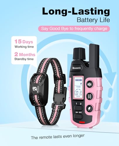 Incredible Battery Life: Bousnic e collar for dogs training has a decent battery life. The receiver’s battery can last for up to 15 days in working modes while the remote for over 1 month. the long battery runtime is a true lifesaver on those camping or tailgating weekends.