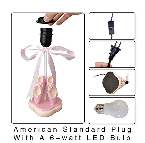 Cute Element: The Bedside lamp is a pink Dancing shoes design, which is high quality Resin. It’s really cool to decorate your little one’s bedroom with kids’ table lamp.