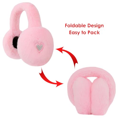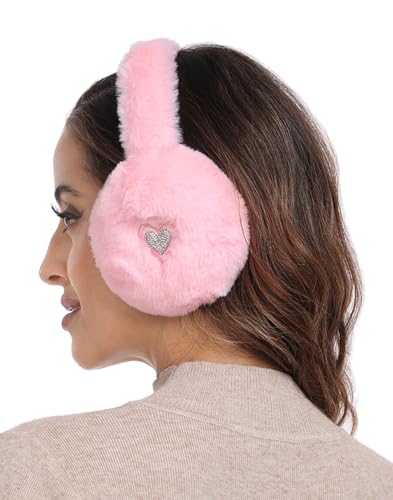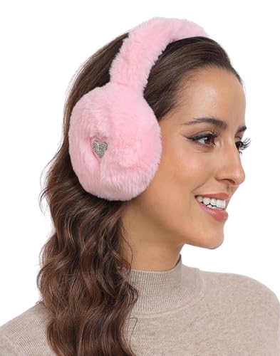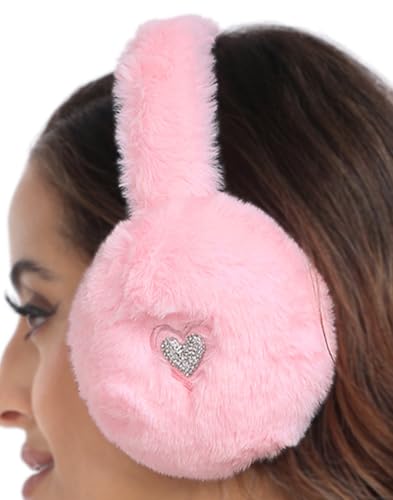 HDE Women’s Fuzzy Faux Fur Earmuffs Foldable Ear Warmers with Rhinestone Charms