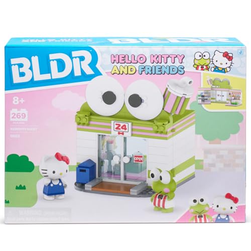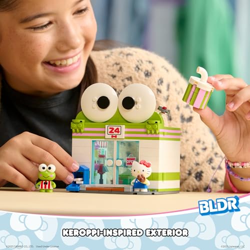 Join Hello Kitty as she explores Keroppi’s vibrant marketplace with this 269-piece construction set. The 24-hour Convenience Store features innovative hinged walls that create a spacious shopping experience. With Keroppi as the friendly cashier, the market comes to life with endless sweet treats and play opportunities. It is brimming with everything you need for an unforgettable, fun-filled day. The set includes poseable minifigures of Keroppi and Hello Kitty, ready to grab a cup of soda, indulge in goodies, and explore the market’s wonders. When the market closes, open the mailbox and send a letter. BLDR bricks are compatible with all major construction brands, so the possibilities for creativity are limitless. Perfect for kids and Hello Kitty and Friends fans alike, this set is designed to spark imagination and bring joy to all who love to build, imagine, and play!