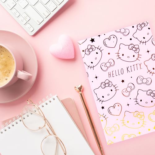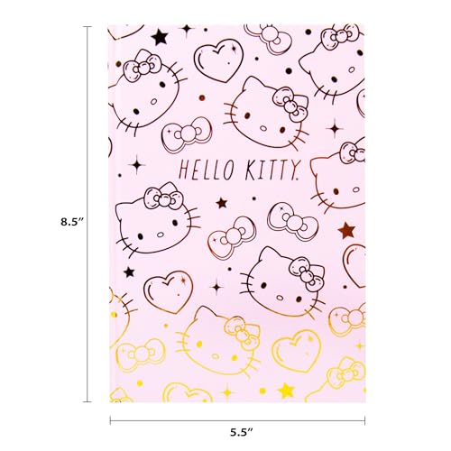 Unlock the magic of self-expression with the official Hello Kitty Journal! This must-have stationery essential holds 87 blank, lined pages, and the pastel pink hardcover is adorned with Hello Kitty, hearts, stars, and her iconic bow in shimmery gold foil. Measuring a perfect 5.75 by 8.5 inches, this journal is great for any on-the-go Hello Kitty fans. Slip it into your backpack or purse, ensuring you’re always ready to take notes or capture thoughts and ideas wherever inspiration strikes. With a pre-attached gold ribbon page saver, you can easily pick up where you left off, never missing a moment of your creative journey. Plus, it’s the perfect addition to your collection of Hello Kitty school supplies, Hello Kitty pens, and more. Whether you’re taking notes in class or at work, jotting down daily musings, or simply embracing the joy of Hello Kitty, this journal empowers you to celebrate your unique self! It’s ideal for anyone looking for kawaii school supplies, Hello Kitty stationery, Hello Kitty desk accessories, or anyone who loves cute Hello Kitty stuff! Perfect for any fan ages 6 and up.