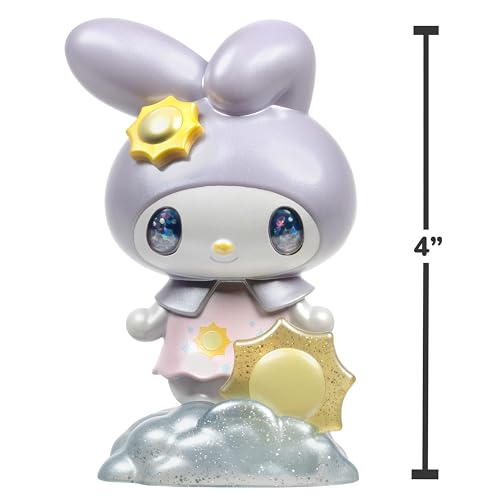 With sunbursts in her eyes and clouds beneath her feet, the 4″ Dreamland My Melody figure is a true ray of sunshine! My Melody is 4 inches tall and features enchanting holographic eyes and a shimmery sheen. She is poised atop a sun-rising cloud adorned with glitter. To create an out-of-this-world Dreamland collection, collect My Melody’s friends Hello Kitty, Cinnamoroll, and Kuromi. Each figure is numbered for collectability. The Series 1 Dreamland collection is the talk of the stars!