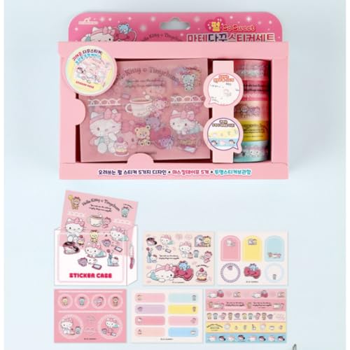 Kitty Kawaii Washi Tape 5 Rolls + 5 Sheets Kawaii Deco Stickers Gift Set, Cute Masking Tape Set for Crafts, Diary, Stationery, Gift Wrappings