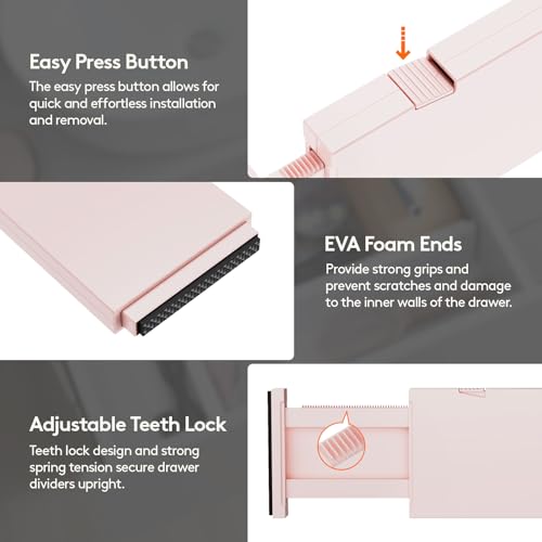 Lifewit 5 Pack Drawer Dividers 4″ High, 11-17″ Adjustable Dresser Drawer Organizers for Clothes, Expandable Dresser Separators in Bedroom/Bathroom/Kitchen/Vanity/Office Organization and Storage, Pink