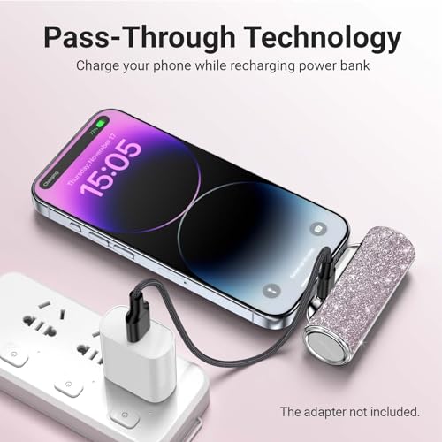 Compatible with USB-C models: This mini portable charger power bank is equipped with a built-in USB C connector, making it easy to charge your iphone 16 15 /pro /pro max /plus series, samsung galaxy series, android cell phone, etc. without having to carry an extra cable.
