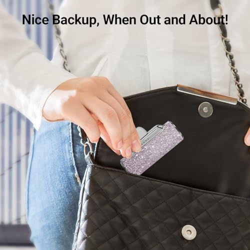 Compact and Delicate Charger: Lipstick size! The bling shining power bank is designed with the embedded rhinestone on its surface that is fashionable and eye-catching, which is ideal as a gift for family or friends. The included storage bag prevents it from scratching.