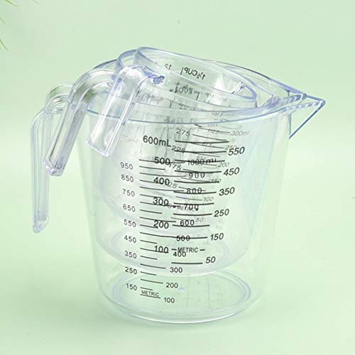Plastic measuring cups 3 pieces: measuring cup set includes 600ml / 300ml / 150ml, 3 cups of different capacities.