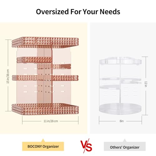 6 Adjustable Heights: BOCONY makeup organizer countertop has 6 adjustable tiers, you can adjust the position of the tray according to the height of the containers, so that the vanity organizer and storage can store all sizes of your skincare products, cosmetics.