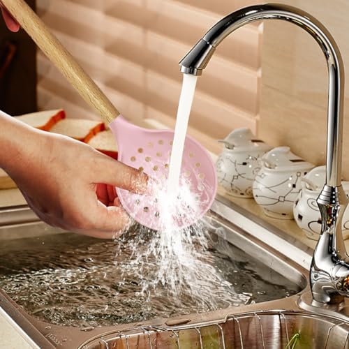 FLEXIBLE AND UNDEFORMABLE DESIGN: Each tool in this spatula set is reinforced with a stainless steel core and fully wrapped in silicone, offering a perfect balance of strength and flexibility. This seamless design prevents food from getting trapped in crevices, ensuring easy cleaning and better hygiene. The tools retain their shape over time and are gentle on non-stick surfaces. The handles feature small holes for easy hanging and storage. For the best care, we recommend hand washing to preserve the wooden handle