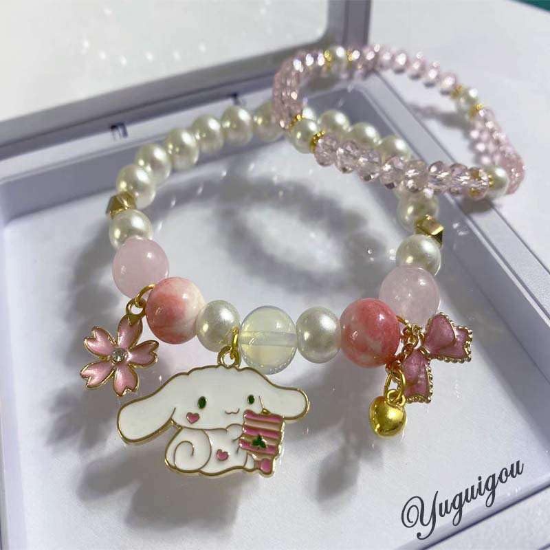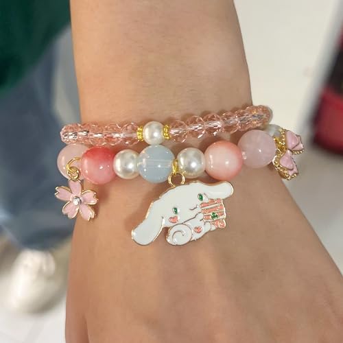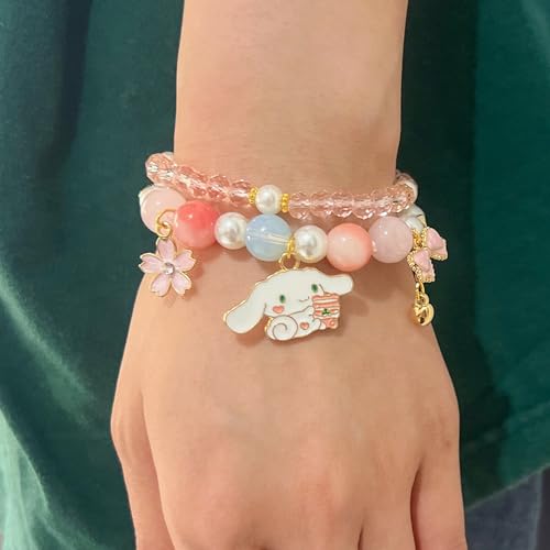 Cute bracelet comes in three styles, Each style contains a crystal bracelet with rosette flower heart charms and an anime bracelet