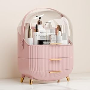 lurcns Makeup Organizer for Vanity Cosmetics Skincare Organizers with Lid and Drawers Display Cases for Countertop (Pink)